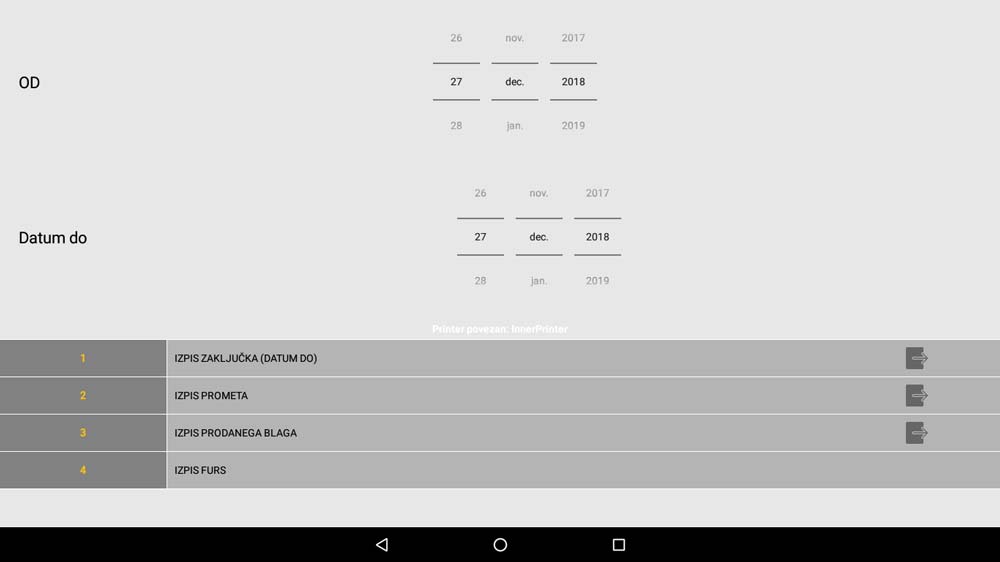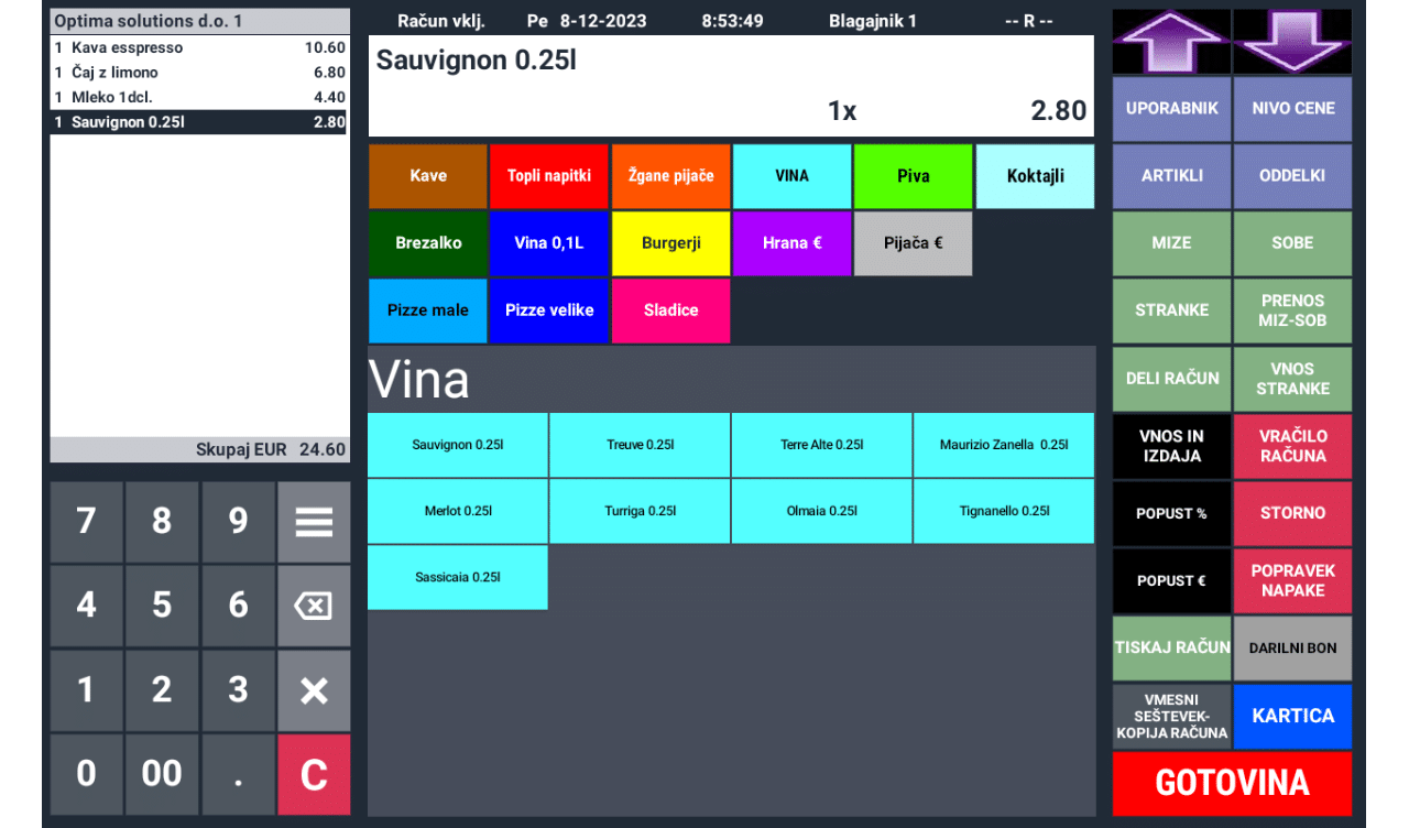 Program OPTIPOS Android BLAGAJNA omogoča: